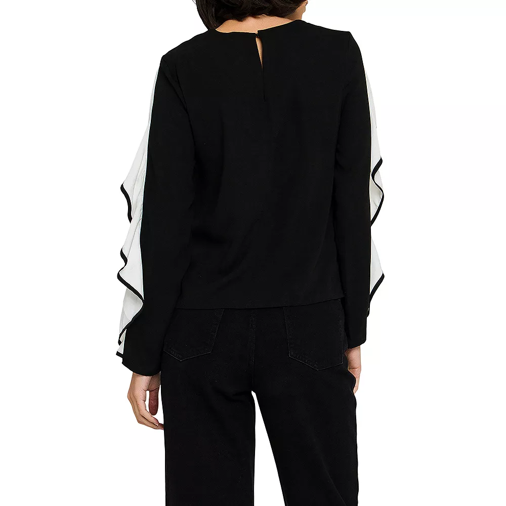 Add a touch of elegance to your wardrobe with this Cascading Ruffle Blouse from ENDLESS ROSE. Made from a lightweight fabric, this blouse is perfect for layering or wearing on its own. Featuring a button closure at the back keyhole, round neckline and cascading ruffle at the sleeve, this blouse is sure to turn heads. Dress it up with a pencil skirt for a work-appropriate look or down with jeans for a more casual feel.