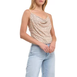 Description: Add some glamor to your look with this Cowl Neck Sequin Top. Whether you’re going out for a night on the town or attending a black-tie event, this top will have you looking your best. The sequin fabric adds a touch of luxury, while the cowl neckline flatters your figure. The back cross tie detail completes the look, giving you a touch of elegance.
