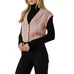 Keep your look simple and refined with this cable-detailed sweater vest. This cropped-length sweater vest features a cable detail down the front and front buttons closure. Pair with a classic button-up shirt and skinny jeans for a sophisticated take on a classic look.