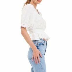 Take your style up a notch with our new Floral Embroidered Smocked Off Shoulder Top. This top is perfect for any special event. With beautiful floral embroidery and puff sleeves, it’s sure to make a statement. Plus, the partial lining ensures you’ll stay comfortable all night long. Whether you’re dressing it up or down, this top is a must-have for any wardrobe.