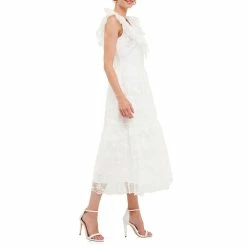 Add a touch of elegance to your daily routine with this flirty midi dress. A perfect feminine silhouette with delicate floral embroidery, this dress is sure to turn heads. The ruffle shoulder detail adds a touch of whimsy while the side pockets make it practical for everyday wear. Dress it up or down, this versatile piece will take you from work to play with ease.