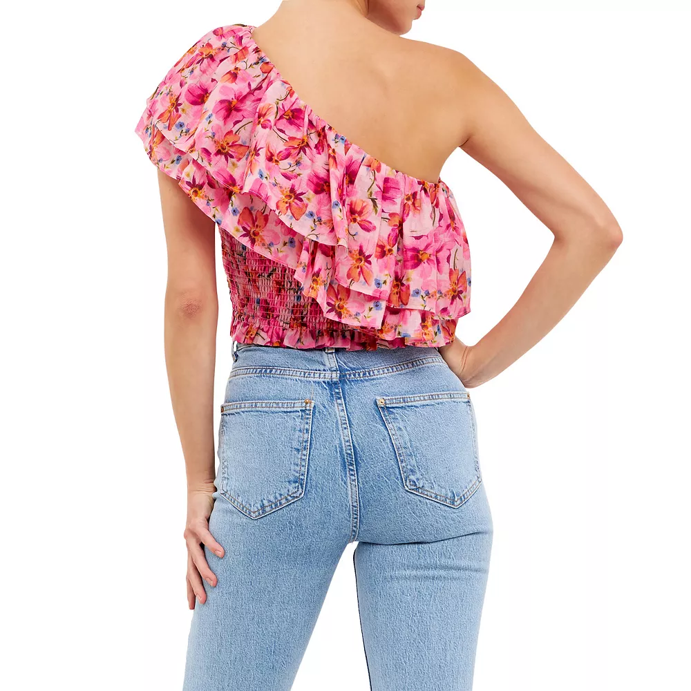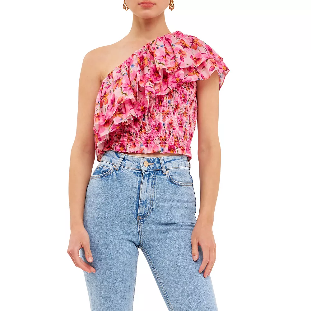 This top is sure to turn heads. With its one shoulder design and ruffled shoulder it’s perfect for making a statement. And the smocked bodice ensures a comfortable flattering fit. So go ahead and show off your style with this sexy top.