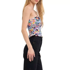 This pretty strapless top is perfect for any summer occasion. With a beautiful floral print and a ruched bust this top is sure to turn heads. The side zipper makes it easy to put on and take off while the lining ensures that you stay comfortable all day long. Whether you’re attending a wedding or just going out for dinner with friends this top will have you looking your best.