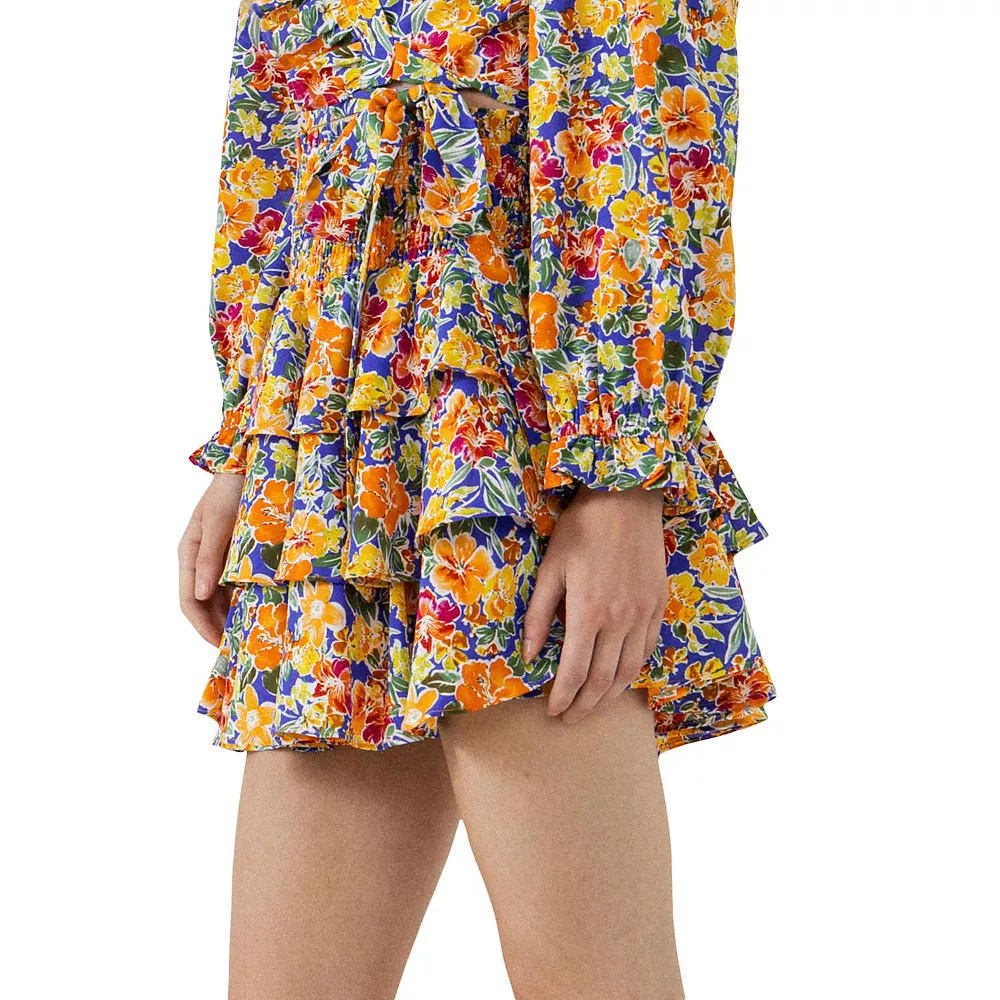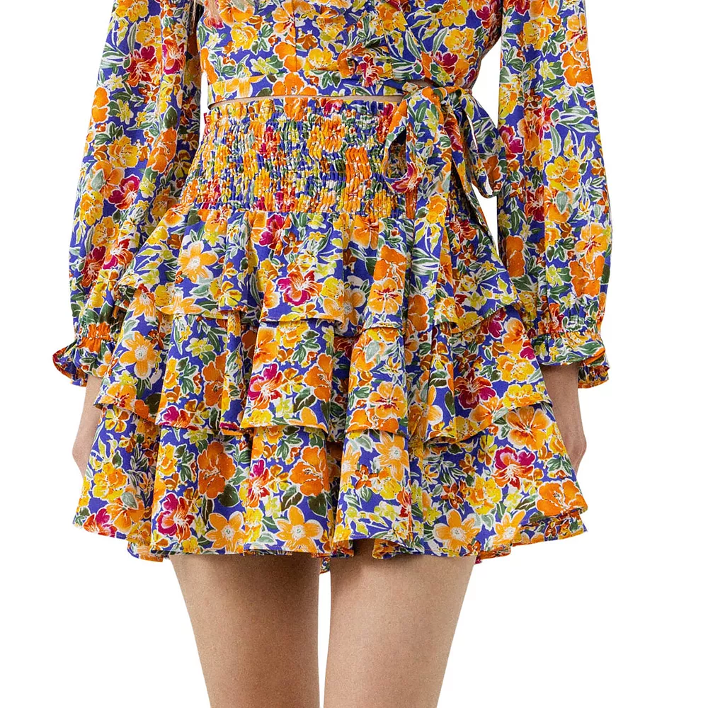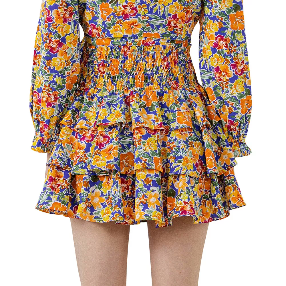 Add some sweetness to your style with this smocked mini skirt. With its tiers of flowing ruffles and all-over floral print this skirt is sure to make a statement. The soft lining makes it comfortable to wear while the hand-washable fabric keeps it easy to care for. Whether you’re dressing up or dressing down this pretty little number is perfect for any occasion.