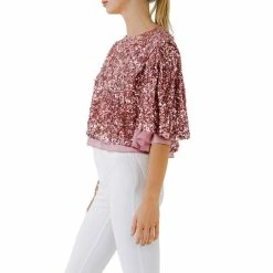 Looking for something fun and flirty? Our Flutter Sleeve Sequins Short Top is perfect for a night out! The sequins add a touch of glam, while the mesh underlay keeps it flirty and fun. The round neckline and flutter sleeves are both feminine and flattering, while the slight crop makes it perfect for show off your favorite heels. Whether you’re hitting the dance floor or grabbing drinks with friends, this top is sure to turn heads!