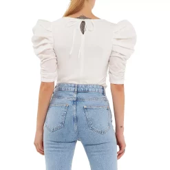 We have a thing for mixed media and the endless possibilities it creates. This top is one of our favorites because it’s the perfect blend of effortless style and artful design. The back tie detail adds a feminine touch, while the pleated sleeves add a touch of sophistication. You’ll love how this top can be worn with anything from jeans to a skirt and it’s the perfect statement piece for any occasion.