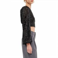 The perfect night out top, this one-shoulder crop top features an asymmetrical design and sparkling sequins. Slip it on with your favorite skirt or pants for a night of glamour. You’ll be turning heads all night long in this beautiful dressy crop top.