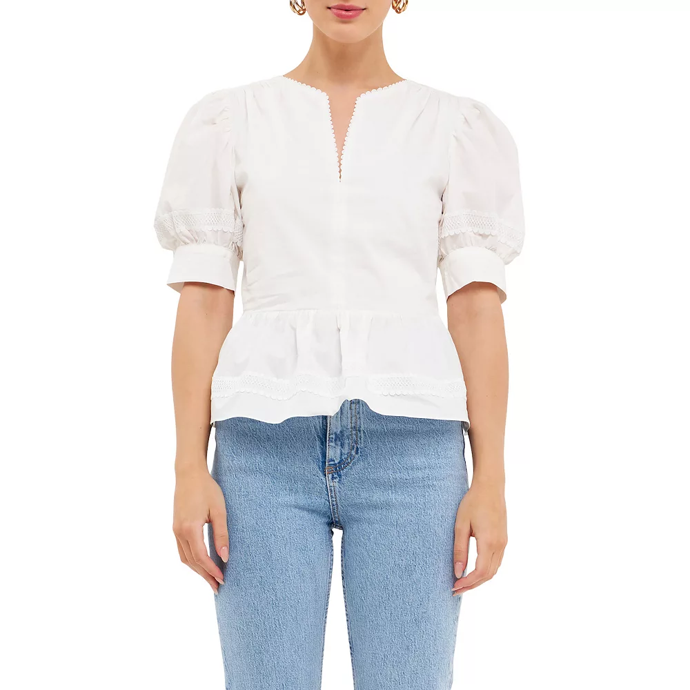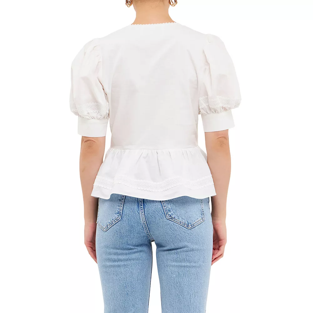 Give your style a sweet update with our Placket Lace Trim Baby Doll Top. Who doesn’t love a little lace trim? This top features feminine details that will add some sweetness to your look. With a puff short sleeve and cuffs it’s perfect for hot summer days. Pair this top with a skirt or jeans for an effortlessly chic look.