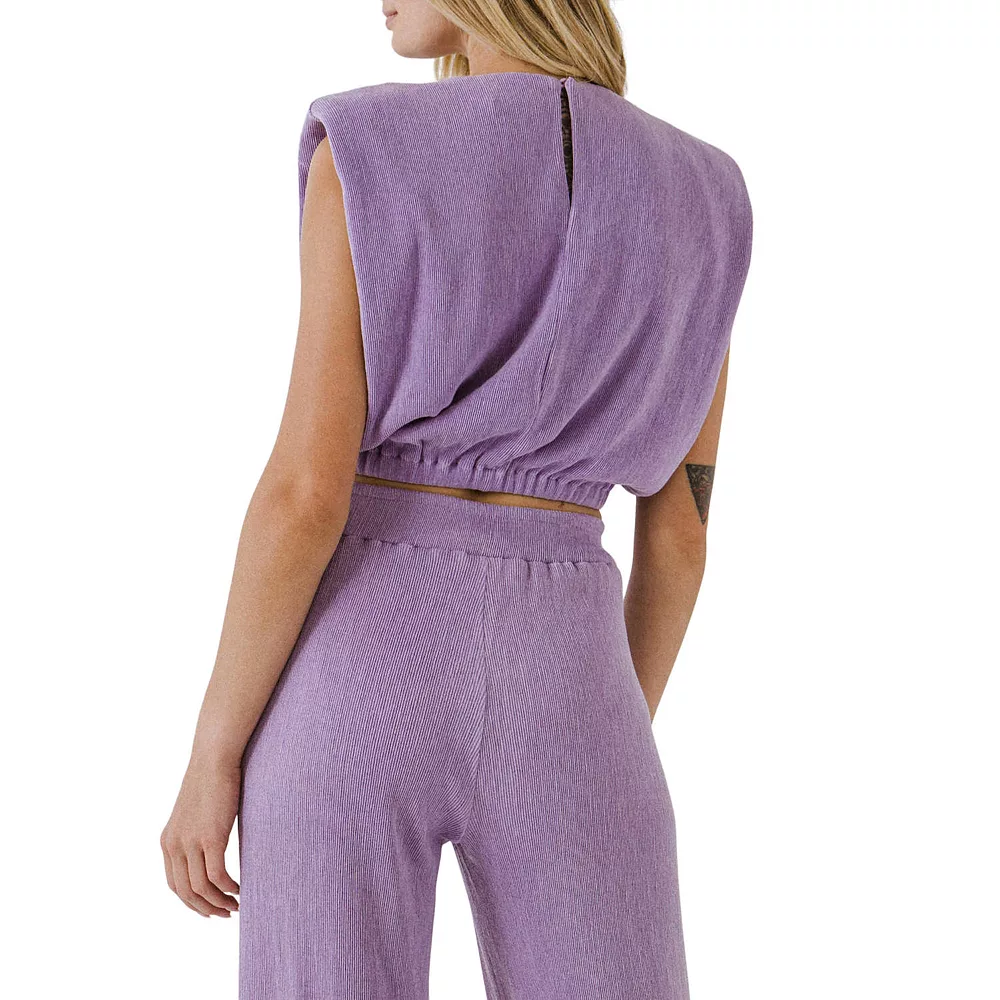 Update your office wardrobe with this chic top. The shoulder pad inserted top is a key look for the season. With a round neckline and sleeveless cut this boxy silhouette is perfect for work or play. Dress it up or down with a skirt or pants. Make a statement at the office or out on the town.