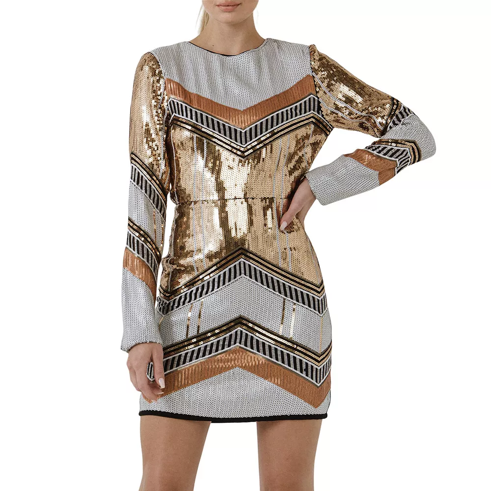All eyes will be on you in this show-stopping sequin mini dress. With its dazzling geometric pattern and elegant long sleeves, this dress will make you feel like a glamourous goddess. The back zipper closure ensures a perfect fit, while the lining makes sure you stay comfortable all night long. Whether you’re attending a black tie event or just going out for drinks with your girlfriends, this dress is guaranteed to turn heads. Add some sparkle to your wardrobe with our Sequin Backless Mini Dress.