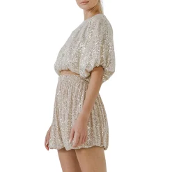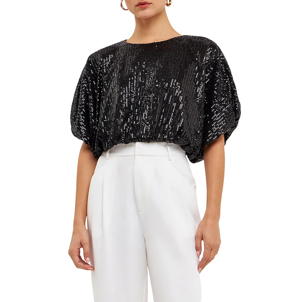 A must-have for your wardrobe, this sequin cropped top is perfect for any event. With its chic balloon style, this piece will be the only thing you need to complete your look. Whether you’re headed to a festival or just want to add some sparkle to your life, this top is the perfect option.