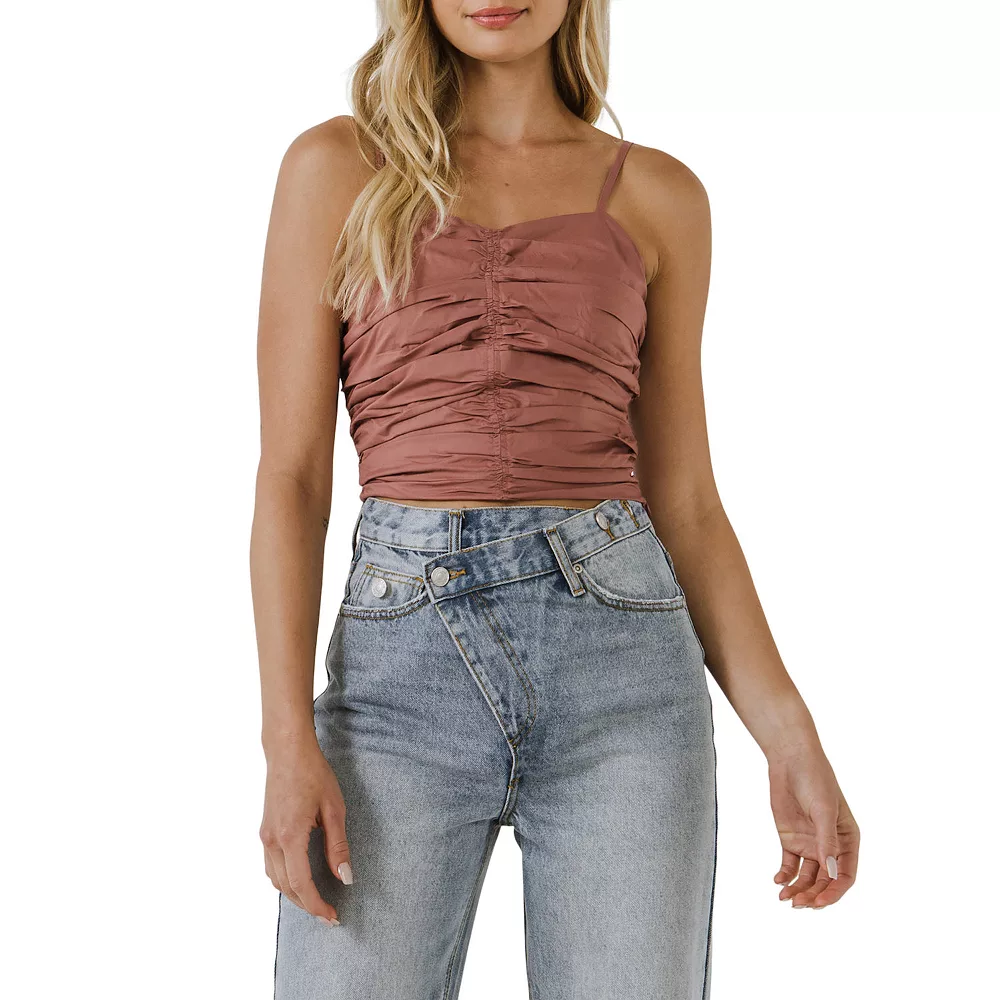 Give your outfit some edge with this shirring detail tank top. Pair it with jeans or shorts for a cool, casual look. This is a must-have in your wardrobe.