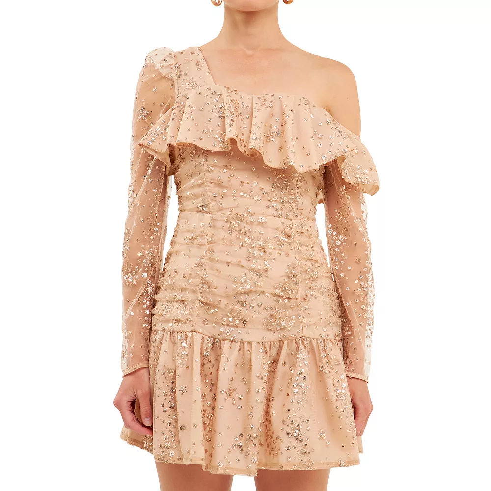 Make a wish in this star-studded asymmetrical dress. Strut your stuff in this head-turning, one-of-a-kind dress. With stars embellished all over, this dress is sure to make you shine brighter than the rest. Whether you’re hitting the town or attending a gala, you’ll be the life of the party in this unforgettable dress.