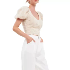 Add a touch of texture to your everyday look. With stretch fabric and pretty details, this top is perfect for any day. The puff sleeves and shirring on the shoulders give it a touch of femininity, while the sweetheart neckline adds a touch of glamor. Dress it up or down-either way, you’ll love how this top makes you feel.
