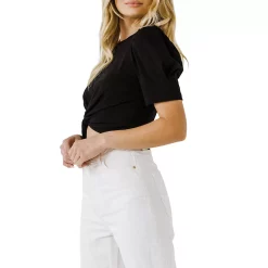The perfect top to wear all season long. This short sleeve cropped knit top is perfect for a casual day out. With a front twist detail and round neckline it’s stylish and comfortable. You’ll love the soft and relaxed fit of this top. Pair it with jeans or a skirt for a versatile look that you can wear any day of the week.