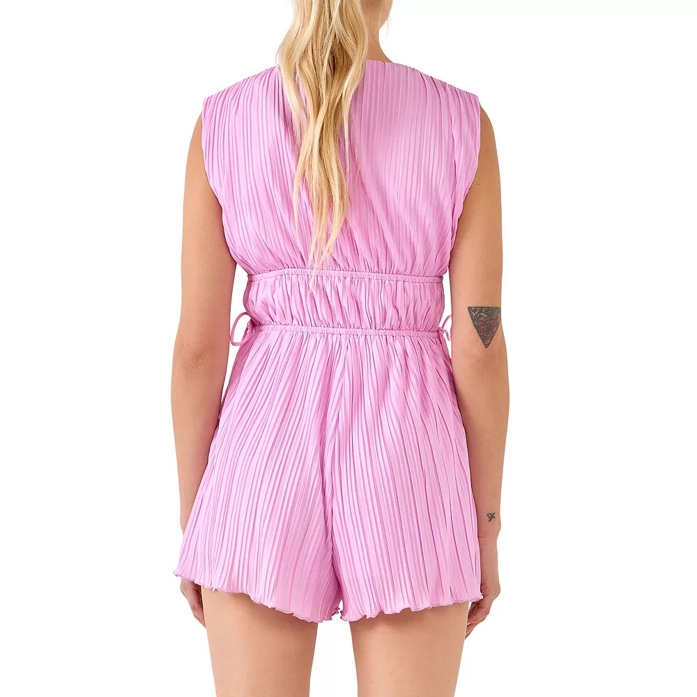 This mini romper is perfect for showing off your legs and turns heads with its all over pleats. The v-neckline is flattering and the elastic waistband ensures a perfect fit. Plus, it’s lined for extra comfort. So go ahead and grab this romper before it’s gone!