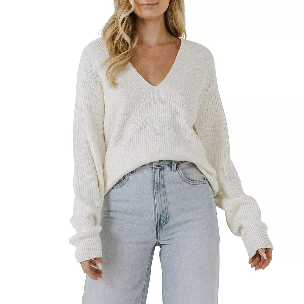 This is the perfect sweater for fall. With its oversized fit and plunging v-neckline, this sweater is the perfect fall essential Made from ribbed sweater fabric, this sweater will keep you warm and comfy all season long.